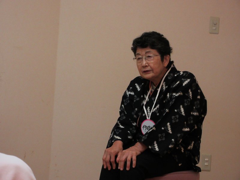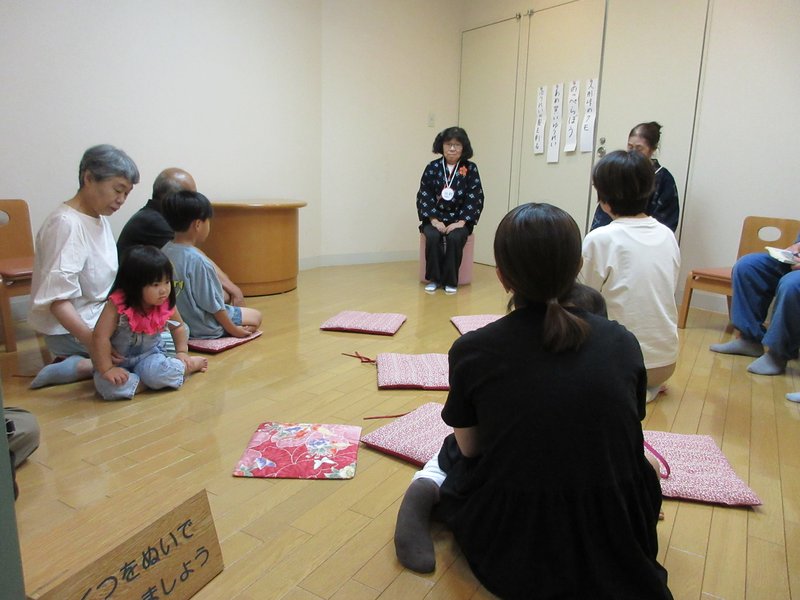 「少しは涼しくなりましたか」と伊佐田さん。高齢者から2歳の女の子まで熱心に聞いていました。少しは涼しくなったでしょうね。
