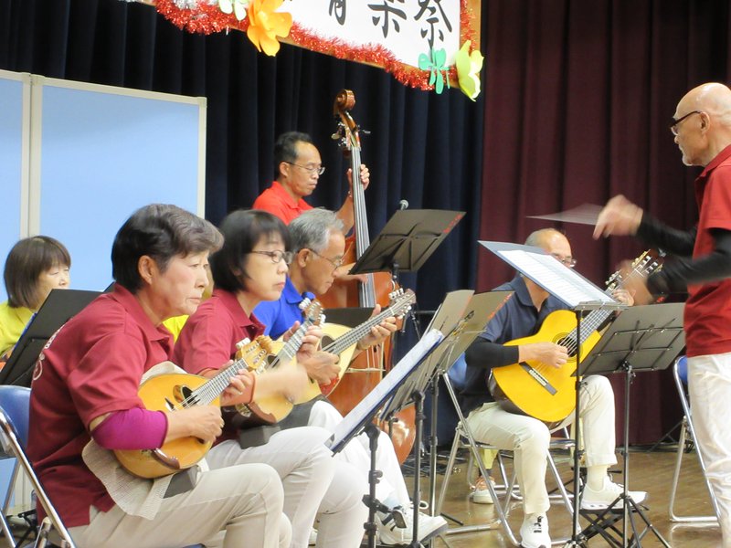 結成20年を迎えたマンドリンアンサンブル済美は「ふなおか夢音楽祭での演奏に向け、1年間練習してきた」そうです。どの曲も11人の演奏がぴったり合い、練習の成果が十二分に発揮された発表でした。最後の曲あの素晴らしい愛をもう一度の演奏では、自然に手拍子が起こり、なかには一緒に口ずさんでいる方もいらっしゃいました。