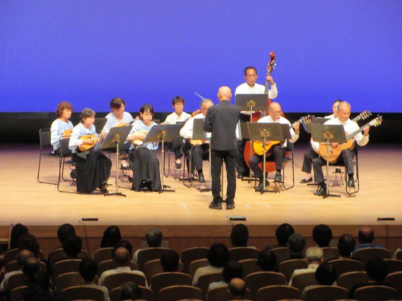 午後はとっとりいきいきシニアバンク登録団体のマンドリンアンサンブル済美(代表中島標さん)のマンドリンコンサートからスタートです。演奏曲は日本抒情歌集抜粋、マイウエイ、川の流れのようにです。このグループは結成20年を迎え、毎週八頭町船岡の済美地区公民館で練習しています。どの曲もマンドリン、ギター、コントラバスの演奏がぴったり合い、千人の聴衆は聞き入り拍手を送っていました。