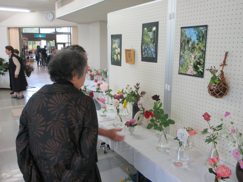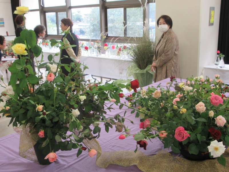 バラ愛好家グループ米子バラ会(会長小林徳成さん)主催の秋のバラ展が10月25、26日、鳥取県米子市児童文化センターで開催されました。会員のみなさんが自宅の庭で育てた百本をこえる切り花が来場者を楽しませていました。