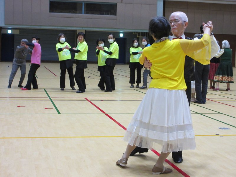 5曲のなかには初めて踊るダンスもあります。最初に基本的なステップ等の見本を見て、3、4回踊ると綺麗に揃うのを見ると基本を身につけていて、すぐに応用できることが分かります。参加者のみなさんは、とにかく楽しそうです。曲が終わるたびにみなさんの歓声、拍手、笑顔がはちきれます。拍手は「楽しかった、講師のみなさんありがとう」を表しているそうです。