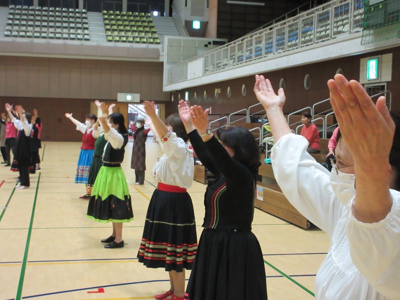 全国ではフォークダンスを広めようと、一斉に「オクラホマ・ミクサーをもう一度」イベントが開催されます。鳥取県では11月13日に鳥取県フォークダンス連盟(会長荻原恵子さん)主催で、鳥取市天神町鳥取産業体育館メインアリーナであり、約80名の方々が様々なジャンルの踊りを楽しみました。
