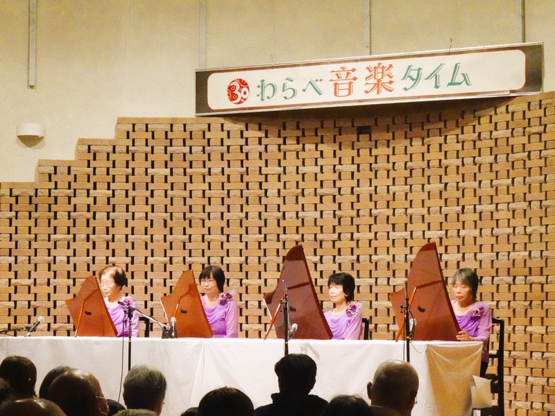 鳥取市のわらべ館で12月13日、わらべ音楽タイムが開催され、ヘルマンハープアンサンブル(代表塩崎洋子さん)4名が薄紫の衣装で登場し、ヘルマンハープを演奏しました。